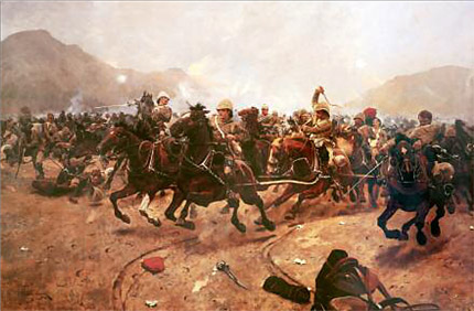 Saving the Guns at the Battle of Maiwand, by Richard Caton Woodville, 1883. Shown as an heroic kind of triumph, the disaster at Maiwand threatened to completely unravel British policy in Afghanistan.