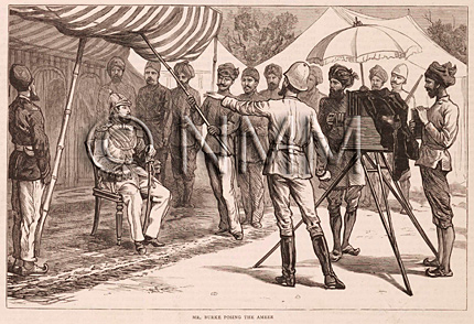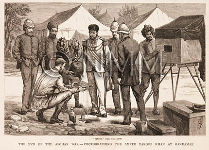 SN: A great example is when in May 1879 Burke photographed the meeting of Major Cavagnari with the newly inaugurated Emir of Afghanistan, Yakub Khan at Gandamak. This meeting established that Cavagnari would be allowed to establish an Embassy with a small staff in Kabul itself - British victory seemed complete. Burke photographed the signing of the Treaty, and made portraits of the Emir. The event was widely reported back in Britain as ‘The End of the War in Afghanistan’. On June 7th, The Graphic reproduced seven of Burke’s images and on July 12th they printed a pair of engravings of Burke photographing the Amir on the front cover of the magazine itself, a rare distinction for any photographer. Is this the first time a photojournalist appeared on the front cover of a magazine?
