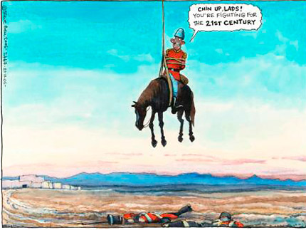 Prime Minister Tony Blair sends the British Army back to Afghanistan. Cartoon by Steve Bell in The Guardian, November 21 2006